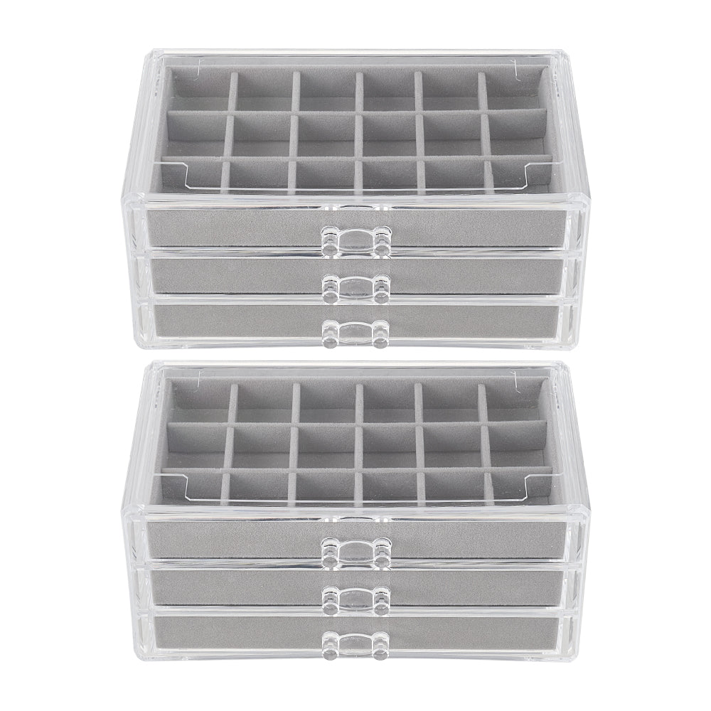 This 2-piece jewellery box set is your ideal choice for organising and protecting precious jewellery. It combines flocking and transparent plastic for a stylish yet practical design. Featuring six independent drawers, each internally divided into 18 flocked compartments, it allows for categorised storage and protection of your jewellery against scratches and tangles. The transparent design enables you to easily locate desired pieces, while the delicate clear handles make opening and closing drawers more convenient. The enclosed drawer design helps protect your jewellery from dust. Additionally, with built-in removable dividers, it can adjust spaces according to different sizes and shapes of your jewellery pieces.