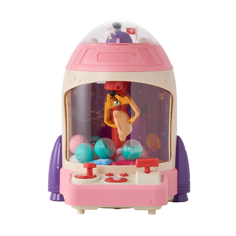 Capture the thrill of the classic claw machine in the comfort of your home. With its sleek, futuristic design resembling a spaceship ready for launch, it is a toy that brings both excitement and charm to any room. The transparent dome at the top showcases an astronaut and a moon scene, creating a dreamy space-themed atmosphere. Inside, cute mini plush toys and gashapon containing miniature toys spark curiosity and focus. Dual joysticks offer precise claw manoeuvring for engaging, skill-based play. Vibrant built-in lighting and playful sound effects deepen the immersive experience. Perfect for cosy afternoons or lively family gatherings, this charming machine delivers endless fun while developing hand-eye coordination.