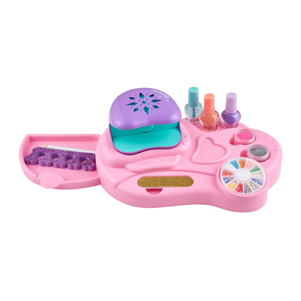 Turn playtime into a dazzling beauty experience with this nail polish toy set! The storage tray keeps every accessory neat and tidy, while a folding tray at the bottom adds extra space to keep their play area tidy. Plus, it includes a automatic nail dryer lamp. Pop your fingers in, and a cool blue light turns on for a realistic touch. With three vibrant polishes plus sparkling glitter and beads, kids can create endless designs. It is a fantastic way to spark creativity and develop fine motor skills, letting every child feel like a true nail artist.