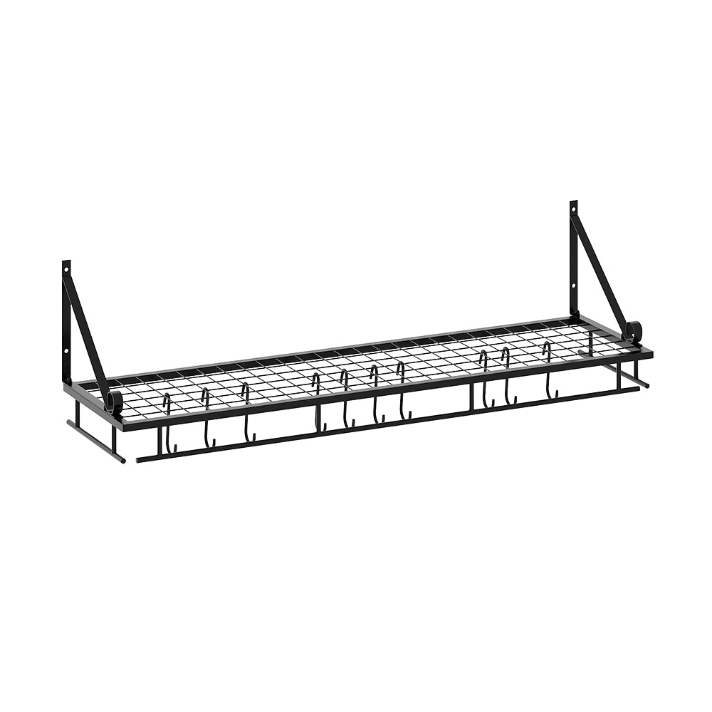 The simple style metal kitchen pot rack is specially designed to store multiple pots and pans and keep cooking utensils tidy. Free up space in your kitchen with this wall-mounted metal rack, 10 powerful metal hooks save a lot of space in the small kitchen. It is perfect for keeping the kitchen organized, so you can immediately put the kitchenware within reach. This shelf can be installed in your kitchen, balcony, or bathroom, and can also be used to hang many other types of household items.