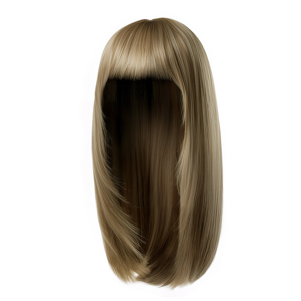 Elevate your daily style effortlessly with this premium wig. This classic long straight wig features full fringe that gracefully frames the face, enhancing your elegant charm. Its hazel ash-brown ombre blends warm brown and cool gray tones, creating rich dimension that brightens your complexion. Crafted from soft, glossy, and heat-resistant fibers, the wig offers a realistic look and feel. The full-cap design ensures a secure, comfortable fit, while the inner elastic breathable mesh keeps you cool all day long. Perfect for daily commutes, dates, or special occasions, this wig instantly boosts your radiance and confidence.