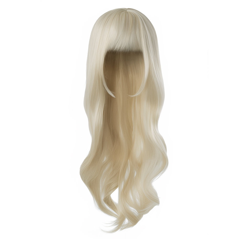 Unlock endless styling possibilities with this dreamy long wig. Soft waves and a classic blunt fringe frame the face gently, while flowing side layers add movement and a touch of playful charm. Every strand of hair is meticulously crafted, and its sheen and realistic texture closely mimic that of human hair. Designed with a soft yet elastic lining cap for a secure fit, it suits various head sizes. Perfect for work, dates, events, or photoshoots, this versatile piece brings effortless glamour to any occasion.