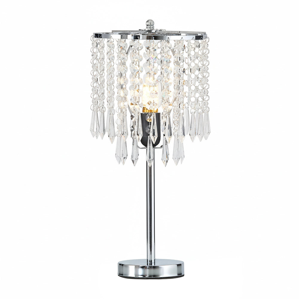A single light that enhances your space. Featuring a robust iron frame, this table lamp ensures long-lasting strength and stable performance. Its shade is embellished with tightly arranged crystal beads, each expertly cut to refract and scatter light, producing a dazzling, starlight-like glow that adds a touch of luxury to any room. Perfect for classic interiors—from traditional and French to American classic décor—it naturally becomes a focal point, elevating the elegance of your space.