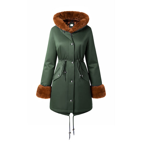 This warm coat blends fashion style with practical warmth for effortless winter wear. The hood and adjustable drawstring hem block cold winds, while the front zipper closure—paired with a buttoned placket—makes it easy to put on and take off and effectively seals out chilly winds. Crafted from premium wind-resistant fabric, it offers lasting durability against harsh weather. Thoughtfully finished with refined details, this versatile coat provides reliable warmth and understated elegance—ideal for commuting, weekends, and everyday outings.