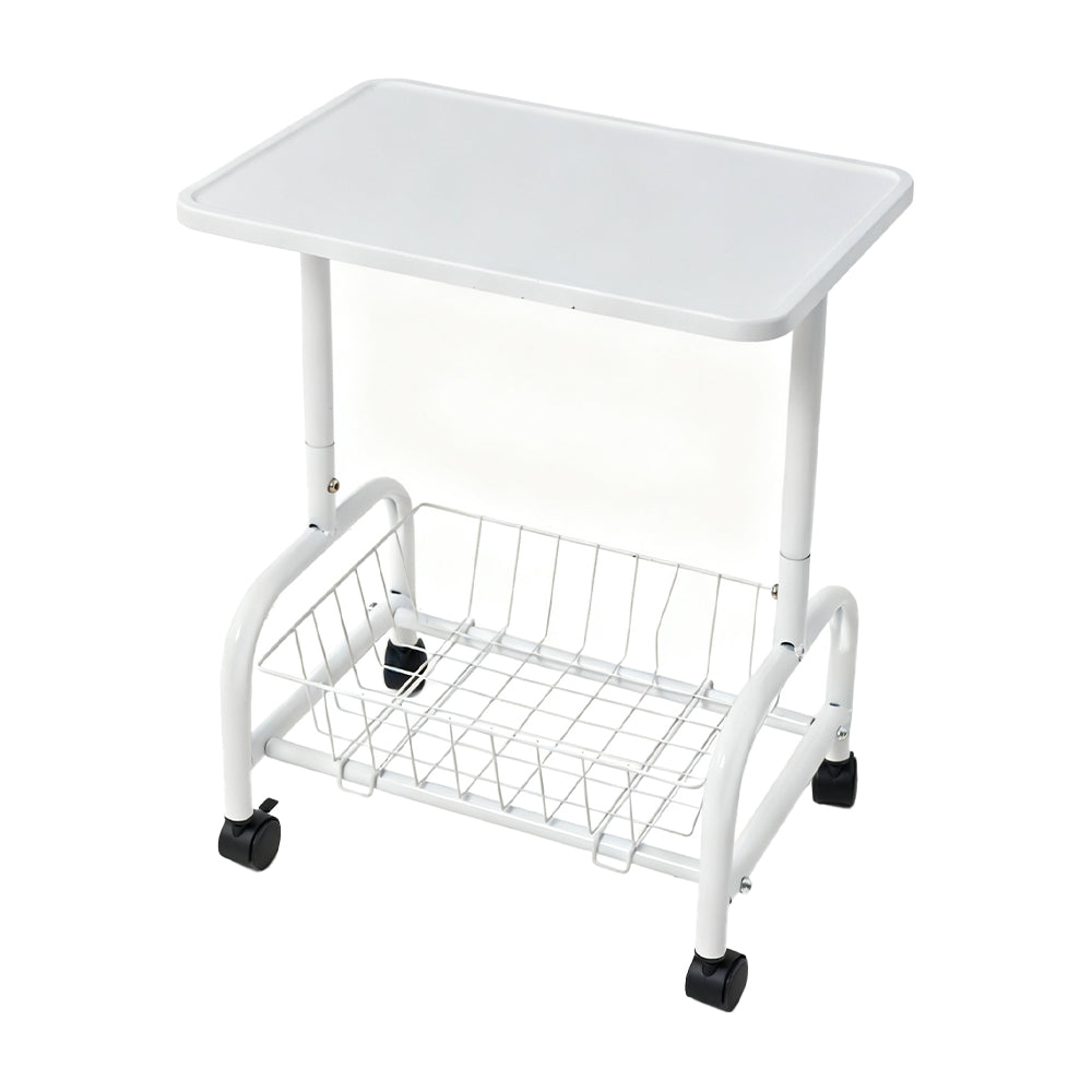 This versatile side table is designed to maximize convenience and space efficiency. It features a sturdy metal frame for long-lasting durability and resistance to deformation. The E1-grade MDF tabletop features raised edges that enhances its visual appeal while preventing items from slipping off. Equipped with four swivel casters—two of which are lockable—the table can be moved effortlessly and secured firmly in place when needed. It is the perfect blend of stylish design and practical functionality for any modern space.