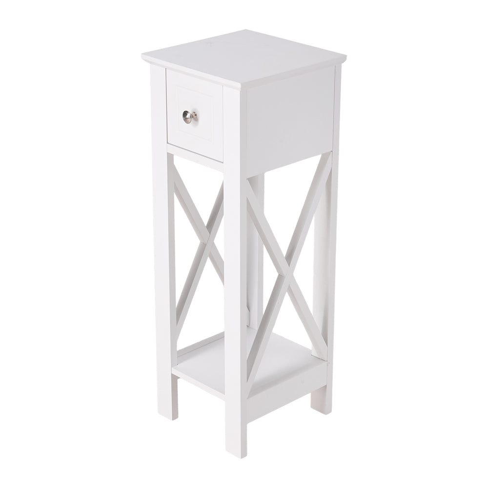This bedside table is an ideal choice for elevating your living space. Featuring open shelves at the top and bottom, it offers convenient storage for magazines, plants, or decorative items, all within easy reach. A thoughtfully included drawer neatly organises small essentials like remotes and phones, keeping them dust-free. The unique X-shaped crossbars on the side not only enhance stability but also add a stylish touch. Whether used as a bedside table, sofa side table, or a compact desk organiser, it seamlessly adapts to various settings in your home.