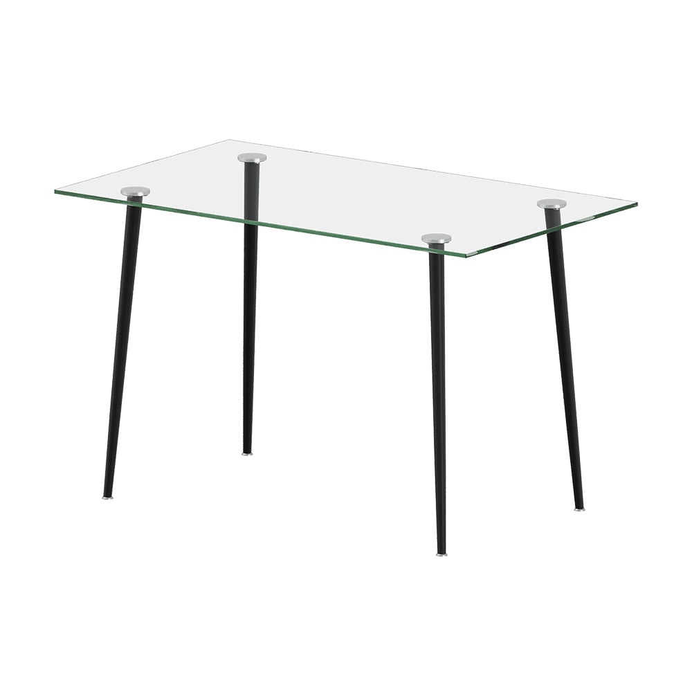 Elevate your dining experience with this stylish table, expertly crafted from tempered glass and metal for a modern and functional aesthetic. The robust tempered glass tabletop offers superior impact resistance and scratch durability, ensuring long-lasting beauty and safety. Supported by strong and sleek metal legs, it provides excellent stability for dining and workspace needs. Its minimalist design seamlessly complements various interior styles, adding a touch of contemporary elegance to your dining room, living area, or study, enhancing your living space with sophistication.