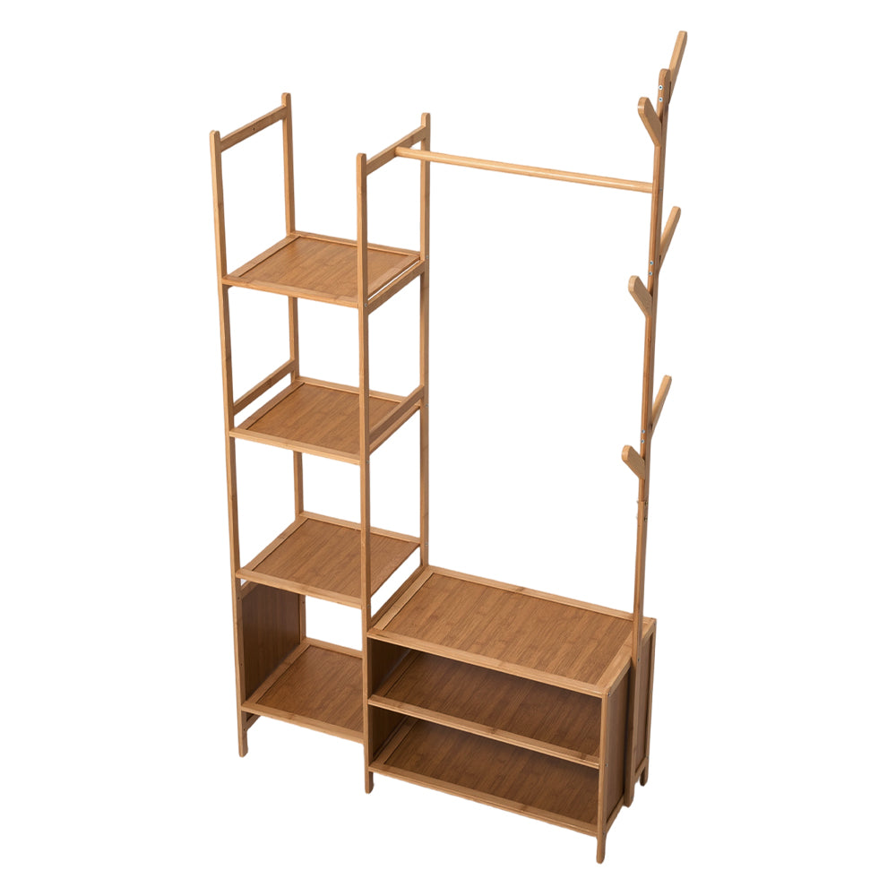 Elevate your entryway with our elegantly designed wooden coat rack. Its natural wood grain and warm tones offer a rustic yet sophisticated charm, seamlessly blending with any home style to enhance cosy ambiance. The robust top rail easily holds heavy winter coats, while creative, tree-branch-like hooks are perfect for hats and bags. Side and lower shelves offer enough space for books, shoes and more, keeping essentials tidy and accessible. A stylish addition to any hall, bedroom, or living space, creating a beautiful focal point.