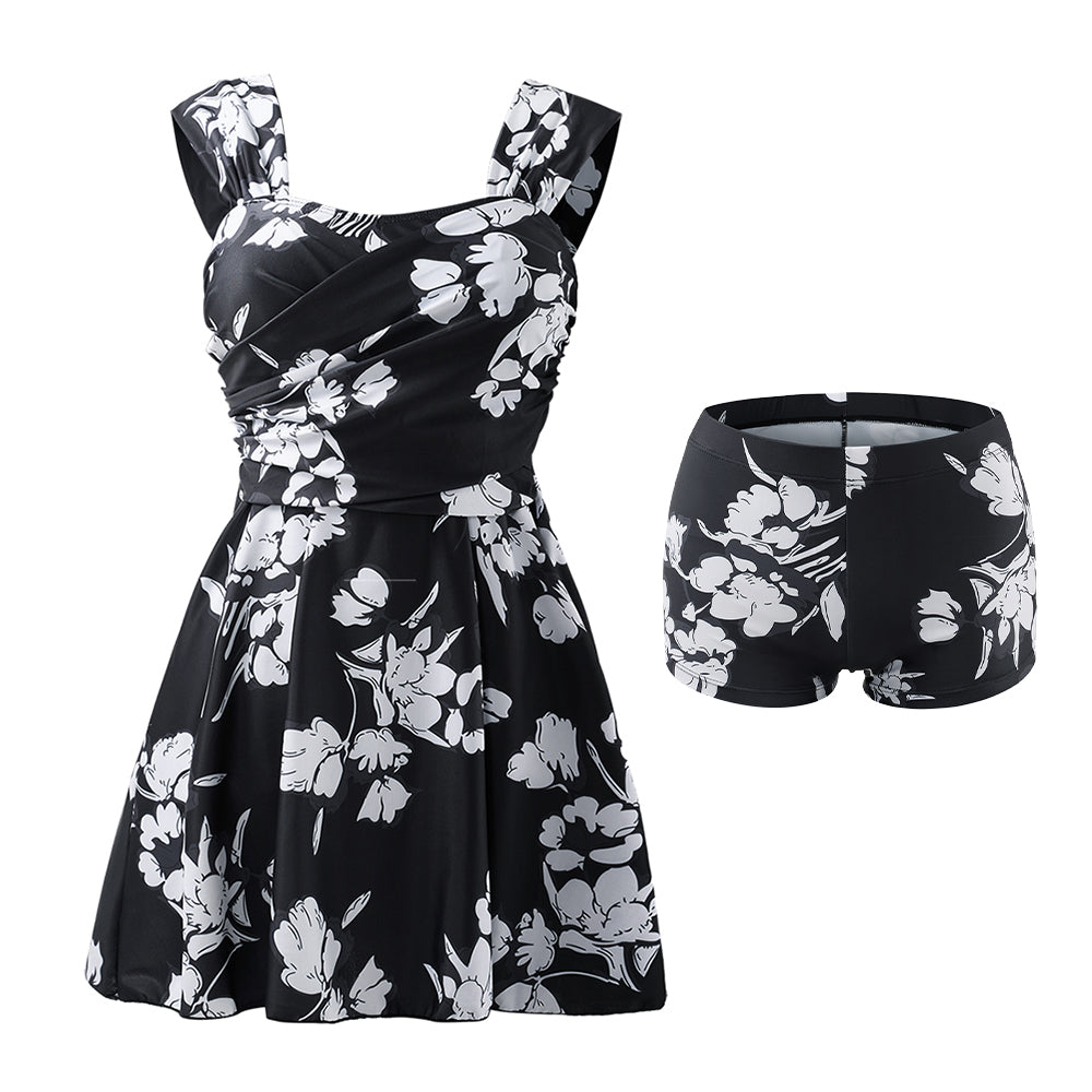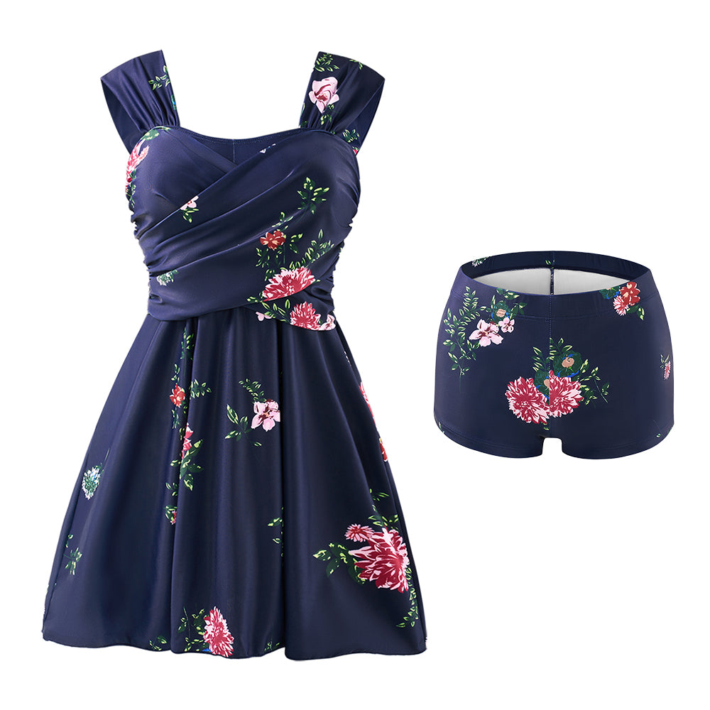 Feel effortlessly confident by the water in this flattering swimdress. A cross-wrap bodice gently shapes and supports the bust, while the softly draped A-line skirt offers elegant coverage for a slimming silhouette. The easy pull-on design eliminates ties and zips for quick, fuss-free wear. Removable padded cups provide adjustable support and comfort. Perfect for beach days, poolside lounging, or cruises, it transitions seamlessly from swimming to strolling—keeping you polished, comfortable, and ready for any seaside moment.