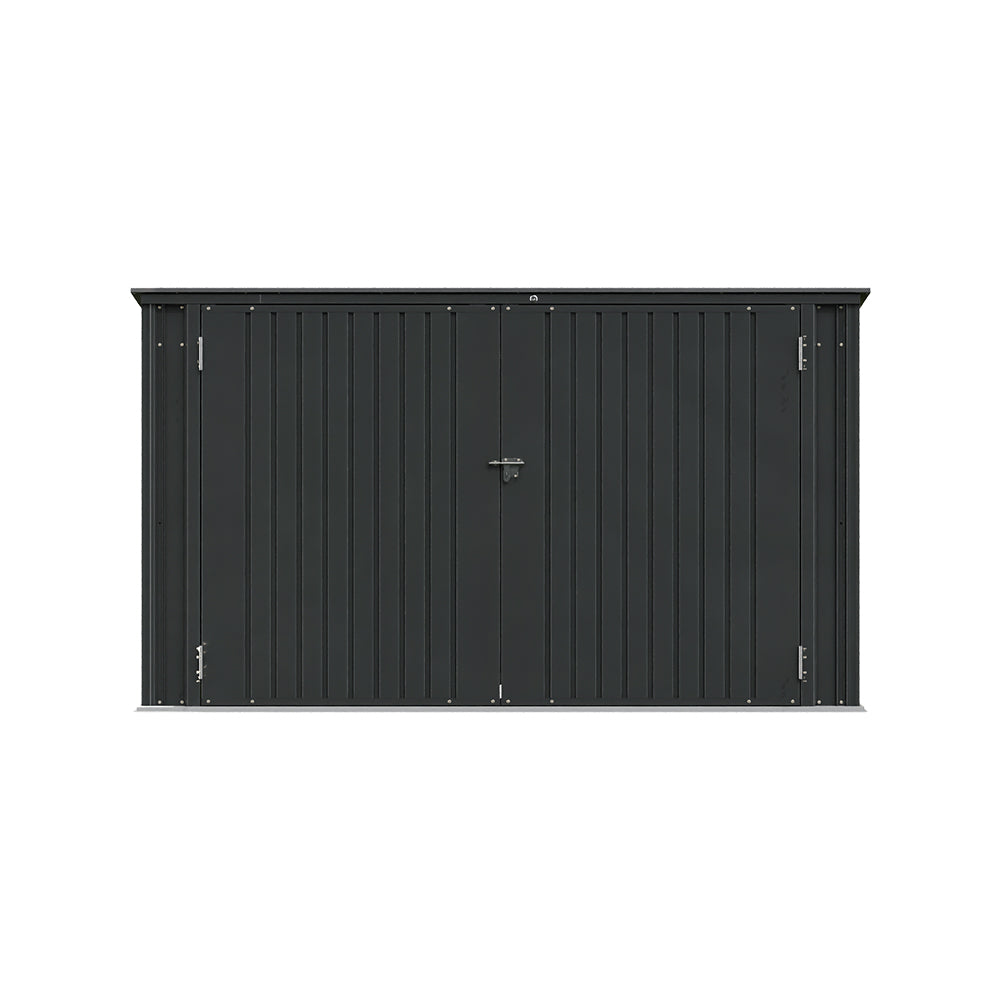 This storage shed provides an efficient solution for storing trash bins, gardening tools, and other outdoor items. Its spacious interior can easily accommodate multiple standard-sized trash bins. The sloped roof design effectively prevents rainwater accumulation, keeping the interior dry and extending the product’s lifespan. Constructed from high-quality galvanized steel, it features a vertical stripe pattern for enhanced aesthetics. Ideal for placement in yards, residential communities, or commercial spaces, this storage shed helps create a tidy and hygienic outdoor environment while improving spatial organization.