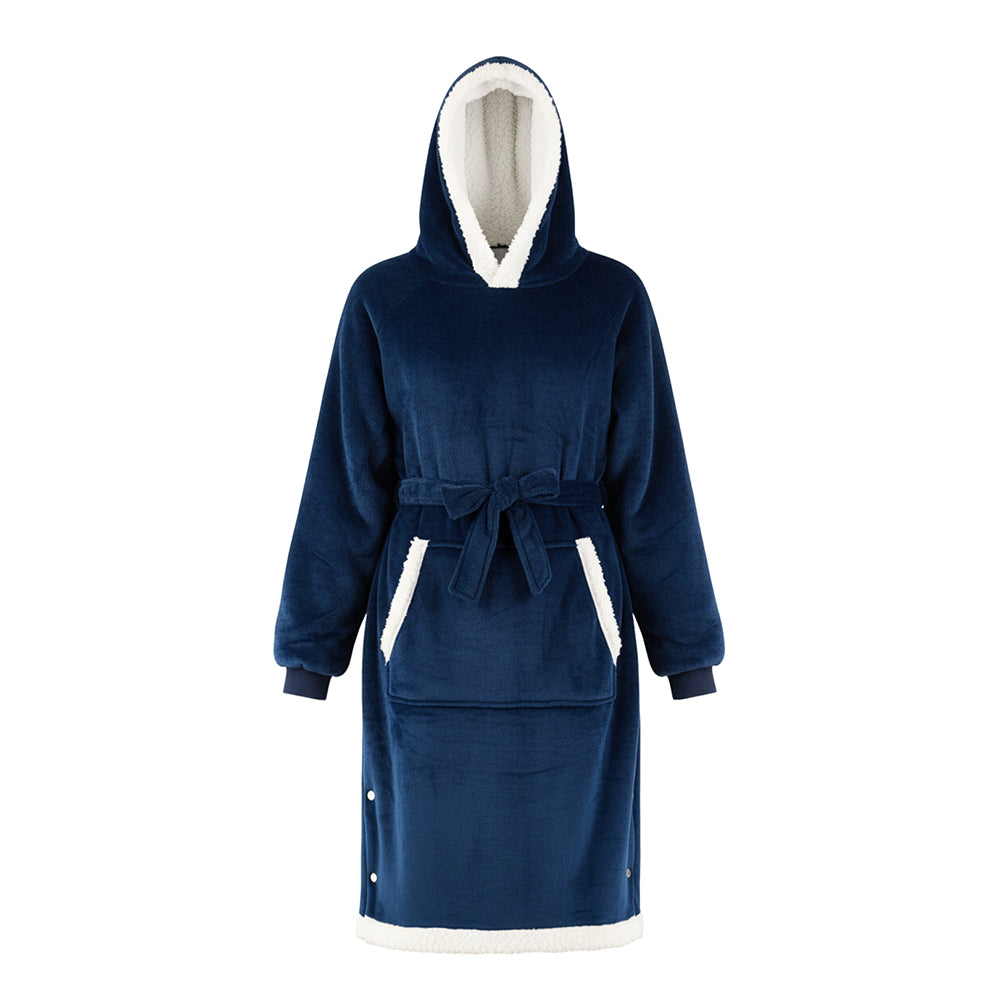All-encompassing warmth and comfort. This oversized wearable blanket features a plush, thickened design with ultra-soft skin-friendly fabric that cocoons you from head to toe in exceptional warmth. Thoughtful details elevate coziness: the oversized hood shields your head and neck from chilly winds; full-length sleeves keep arms covered without restricting movement; and a convenient waist tie ensures a secure, customized fit whether you are walking, sitting, or lounging. Perfect for lazy TV nights at home, office naps, outdoor brunches, camping trips, concert adventures, and beyond—this versatile blanket locks in heat instantly, delivering warmth that moves with you through every moment of your day.