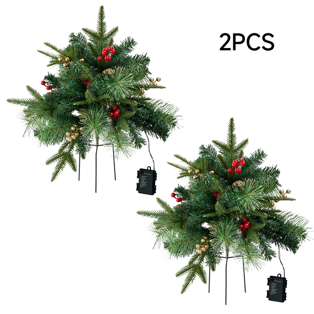 Create an enchanting winter focal point in your garden with this beautifully crafted artificial Christmas tree urn filler! Meticulously designed to mimic natural pine branches, it forms a lush, full silhouette with well-defined layers for an authentic look. Vibrant berry clusters and pine cones are artfully woven throughout the branches, offering cheerful colour contrast and a touch of woodland charm. Combined with the warm glow of string lights, this tree establishes a cosy and magical festive atmosphere in any outdoor setting.