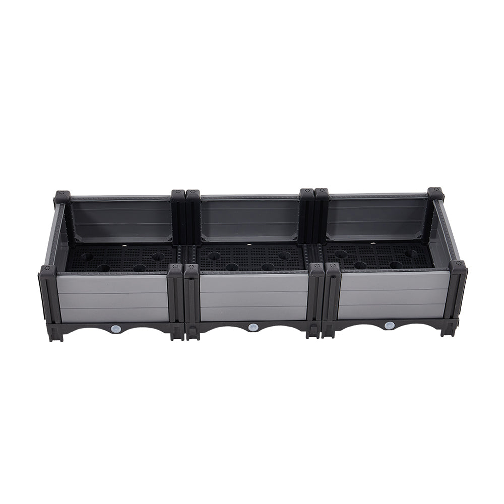 This stylish and practical raised garden bed is perfect for home gardening. Its spacious design offers ample room for vegetables, herbs, and flowers to thrive. The integrated water reservoir base retains moisture to keep soil consistently damp, while the drainage holes with rubber stoppers allow precise water control to prevent root rot. The top caps feature pre-drilled holes for easy installation of support stakes, ideal for climbing plants. Suitable for balconies, patios, rooftops, and more, it helps you effortlessly build a personalised green oasis.