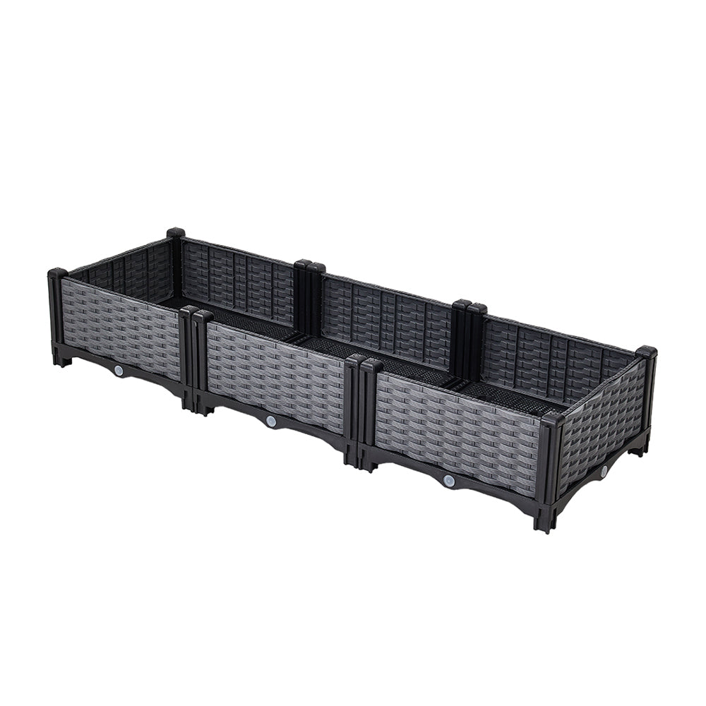 Bring nature effortlessly into your space with this stylish planter box, perfect for growing fresh vegetables, fragrant herbs, or creating a miniature garden. The woven rattan design on the side panels adds a decorative touch, enhancing the aesthetic appeal of any garden or balcony. With its unique self-watering base, it helps store excess water, reducing the frequency of watering and keeping your plants lush and thriving with minimal effort. Additionally, the built-in drainage mesh plate prevents the roots from sitting in water, promoting healthier growth. Perfect for balconies, gardens, and terraces, this planter makes it easy to bring greenery to any space.