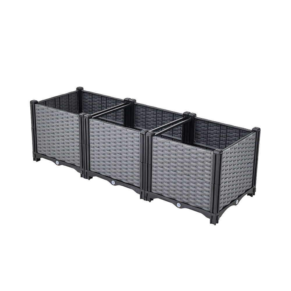 Bring nature effortlessly into your space with this stylish planter box, perfect for growing fresh vegetables, fragrant herbs, or creating a miniature garden. The woven rattan design on the side panels adds a decorative touch, enhancing the aesthetic appeal of any garden or balcony. With its unique self-watering base, it helps store excess water, reducing the frequency of watering and keeping your plants lush and thriving with minimal effort. Additionally, the built-in drainage mesh plate prevents the roots from sitting in water, promoting healthier growth. Perfect for balconies, gardens, and terraces, this planter makes it easy to bring greenery to any space.
