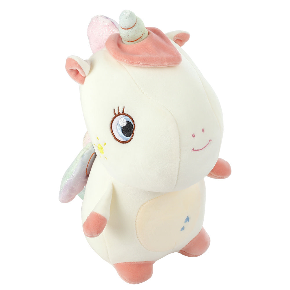 This unicorn doll is the perfect companion for your leisure time. Whether you are reading, binge-watching, or gaming, it offers a warm embrace. Filled with microfiber, it is plump and soft. Despite repeated squeezing, it can spring back into shape, always maintaining its adorable, round form. Moreover, it features a cartoon facial expression that is and endearing. The addition of shiny, full little wings also enhances the magic, bringing a whimsical touch to your room.