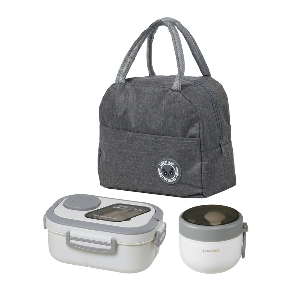 Enjoy homemade meals anywhere with this stylish lunch box set designed for everyday convenience. The set includes a spacious double-layer lunch box with practical compartments to keep mains, sides, and snacks neatly organised. A built-in spork attaches securely to the lid for easy dining on the go. A matching leakproof soup cup with its own lid and spork is ideal for soups or yoghurts. All items fit neatly into the insulated carry bag, which helps maintain food temperature. Perfect for daily commutes, office lunches, or outdoor meals.