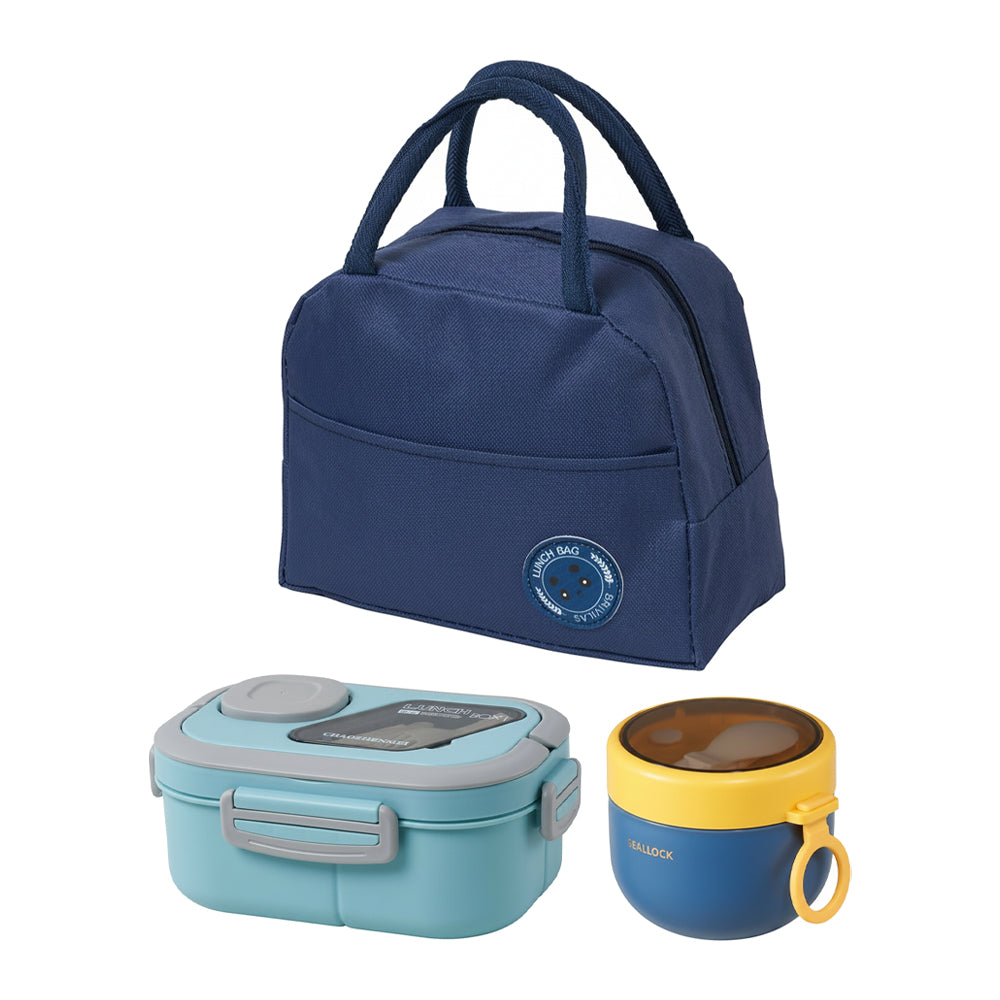 Enjoy homemade meals anywhere with this stylish lunch box set designed for everyday convenience. The set includes a spacious double-layer lunch box with practical compartments to keep mains, sides, and snacks neatly organised. A built-in spork attaches securely to the lid for easy dining on the go. A matching leakproof soup cup with its own lid and spork is ideal for soups or yoghurts. All items fit neatly into the insulated carry bag, which helps maintain food temperature. Perfect for daily commutes, office lunches, or outdoor meals.