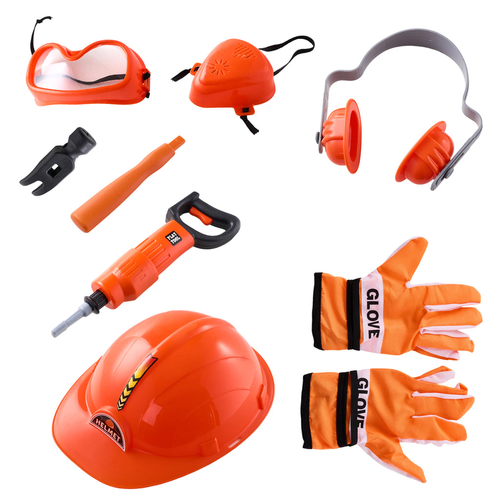 - Featuring a bright orange design that mimics real protective gear to help build safety awareness.