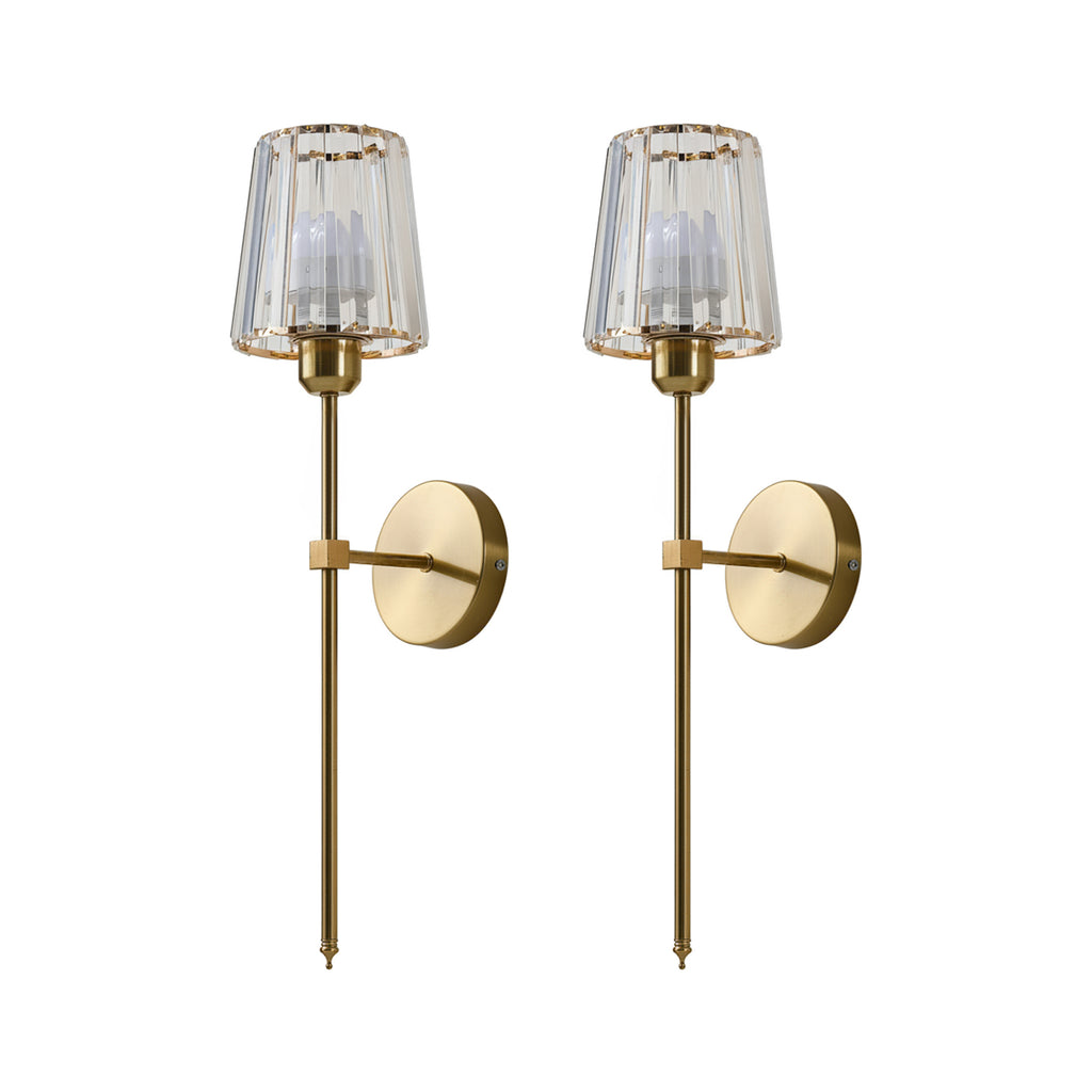 Embrace timeless style with this elegant wall light, featuring a classic silhouette with a golden metal frame and clear glass shade. It artfully blends vintage charm with modern aesthetics, perfectly complementing diverse interior decors. The integrated energy-saving LED bulb emits a gentle, non-glaring light, ideal for daily illumination needs. Tailor your ambiance with three brightness levels, adjustable from 3000K to 6000K colour temperatures, and seven RGB colour modes. Effortlessly controlled via the button or remote, this wall light allows flexible adjustments to brightness, colour temperature, and hue, enhancing your user experience. Perfect for bedrooms, hallways, living rooms, or entryways, it adds both personality and warmth to your home.
