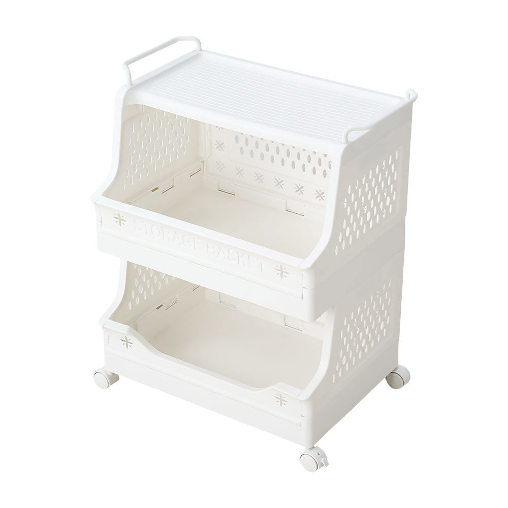 This storage cart helps create a neat and organised living space. Its two-tier design offers smart compartmentalisation for snacks, toys, toiletries, and more, boosting storage efficiency. Ventilated side and back panels enhance airflow to prevent moisture and mould. Six movable hooks hold hats, scarves, towels, and other small items, expanding vertical storage. Smooth-rolling castors and dual top handles make it easy to move anywhere. Perfect for living rooms, bedrooms, bathrooms, or kitchens—it seamlessly fits any space.