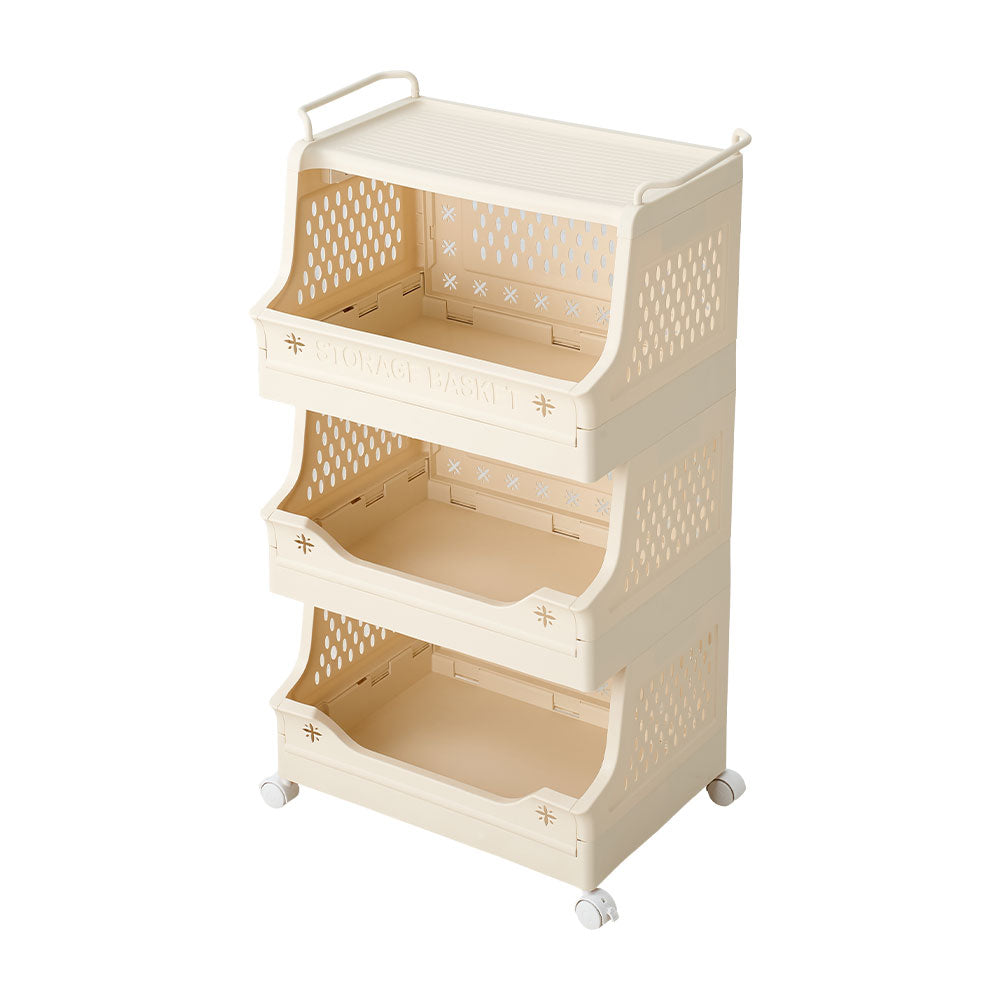 This storage cart helps create a neat and organised living space. Its three-tier design offers smart compartmentalisation for snacks, toys, toiletries, and more, boosting storage efficiency. Ventilated side and back panels enhance airflow to prevent moisture and mould. Six movable hooks hold hats, scarves, towels, and other small items, expanding vertical storage. Smooth-rolling castors and dual top handles make it easy to move anywhere. Perfect for living rooms, bedrooms, bathrooms, or kitchens—it seamlessly fits any space.