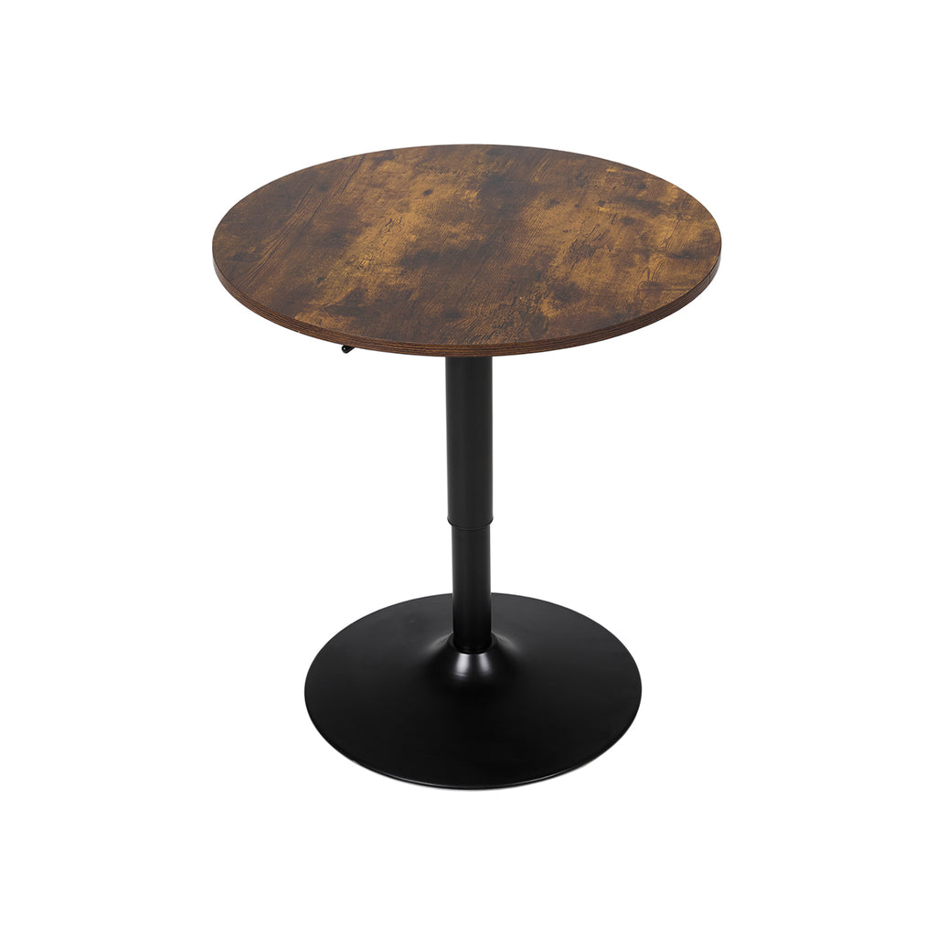 Bring vintage charm and modern functionality to your space with this round retro bar table! Its brown wood grain top paired with a black base effortlessly creates a cosy atmosphere. It features a reinforced gas lift, allowing you easily adjust height from 64 to 88cm – perfect for enjoying coffee, working standing up, or as a temporary dining surface. The compact 60cm diameter design is ideal for small apartments, balconies, or kitchen corners. Whether you are creating a home bar, a balcony retreat, or furnishing a cafe or guesthouse, this table will be a stylish focal point.