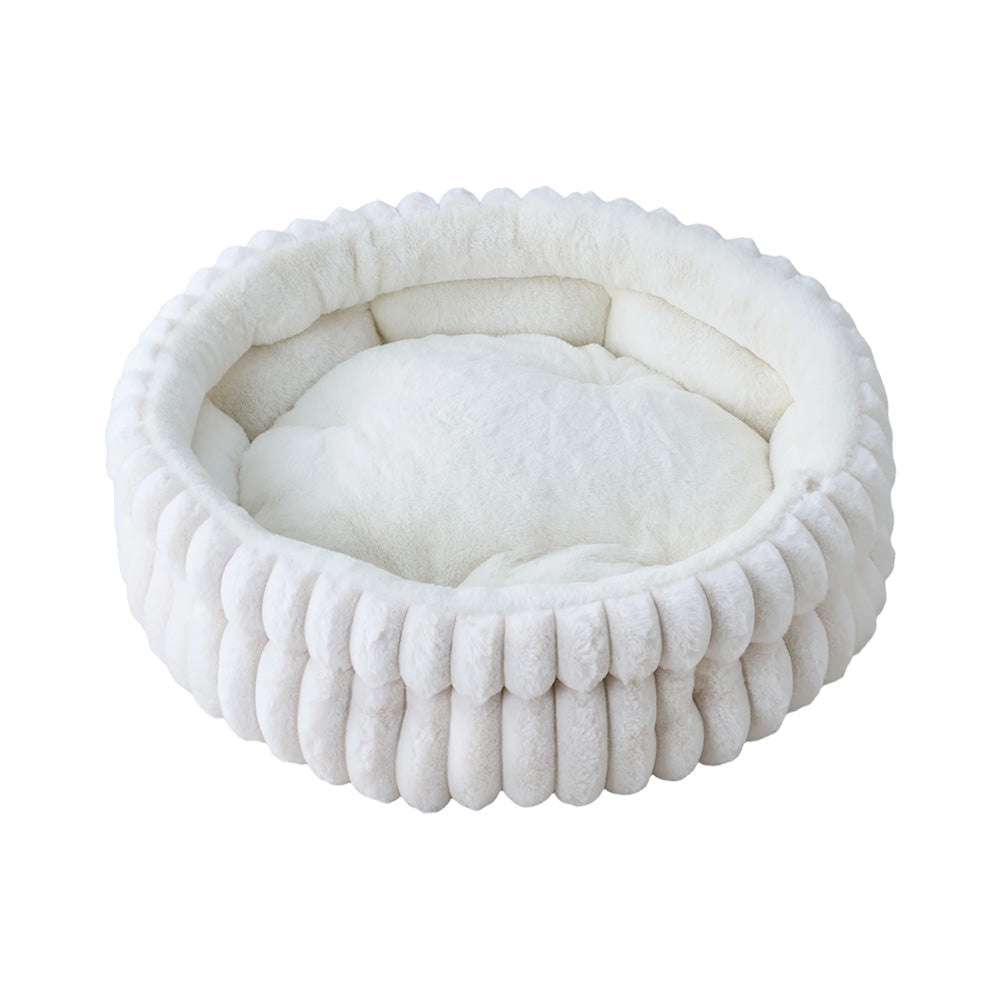 Provide your furry friend with the perfect sleeping sanctuary. The round design perfectly accommodates the natural curling habits of pets, allowing them to feel safe and relaxed in their cosy nest. Elevated edges not only enhance the sense of security but also prevent pets from slipping out, while offering additional warmth. Wrapped in a plush, cotton-feel exterior for softness, the interior is lined with cosy polar fleece, delivering exceptional insulation. Whether it is a small dog or a cat, this pet bed becomes their comfortable haven, making every rest a blissful experience.