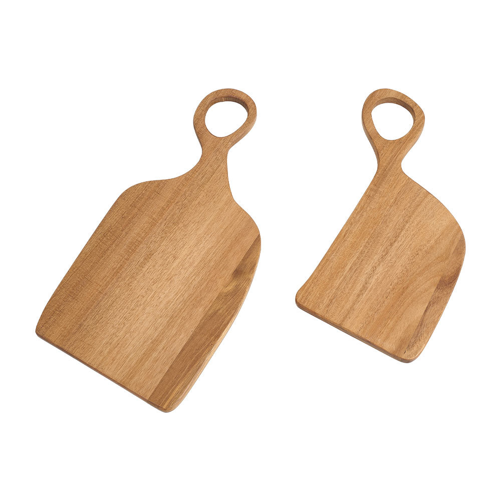 Perfect for couples, this matching cutting board set blends love and function. Featuring a "nesting" design, the large and small solid wood boards fit together like a pair, adding warmth to your kitchen. Made from solid wood with clear grain and sturdy texture, they offer a safe, stable cutting surface. Coated with food-grade oil to nourish, waterproof, and prevent cracking. Each board has an integrated handle for comfortable grip and easy transfer of ingredients into pots. It is ideal for bread, cheese, fruits, vegetables or meat—great for everyday use or entertaining guests.