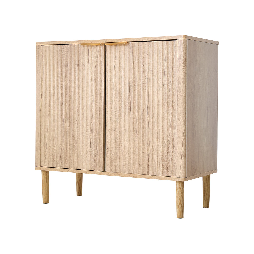 This storage cabinet features a natural wood-tone finish, blending seamlessly into minimalist spaces. The flat top surface serves as a practical display area for decor, plants, or small items. Inside, an adjustable shelf allows flexible space customisation to accommodate items of various heights. Sturdy wooden legs provide enhanced stability and load-bearing support. The dual doors are equipped with handles and smooth hinges for easy opening and closing. Ideal for living rooms, bedrooms, or offices, it adds functional charm to any room.