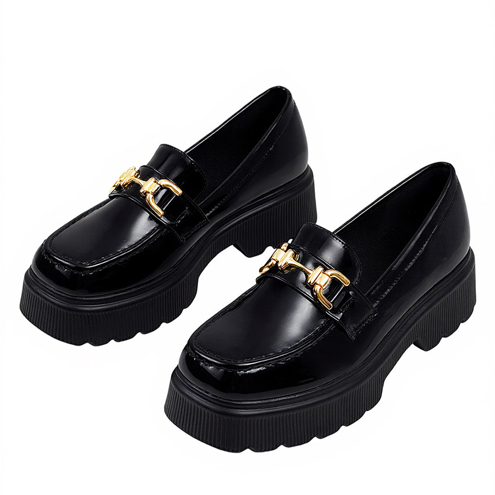 Step into effortless style and all-day comfort with these versatile horsebit loafers, designed for modern living. The slip-on design ensures easy wear, while the low-cut silhouette flatters the ankle and elongates the leg line. The closed-toe design offers timeless appeal, seamlessly bridging smart and casual looks for any occasion. The thick platform sole provides exceptional stability and support, making them perfect for all-day wear. Made from soft PU leather, these loafers ensure lasting comfort and durability, while the fine stitching enhances both sturdiness and aesthetics. A must-have addition to any well-curated footwear collection.