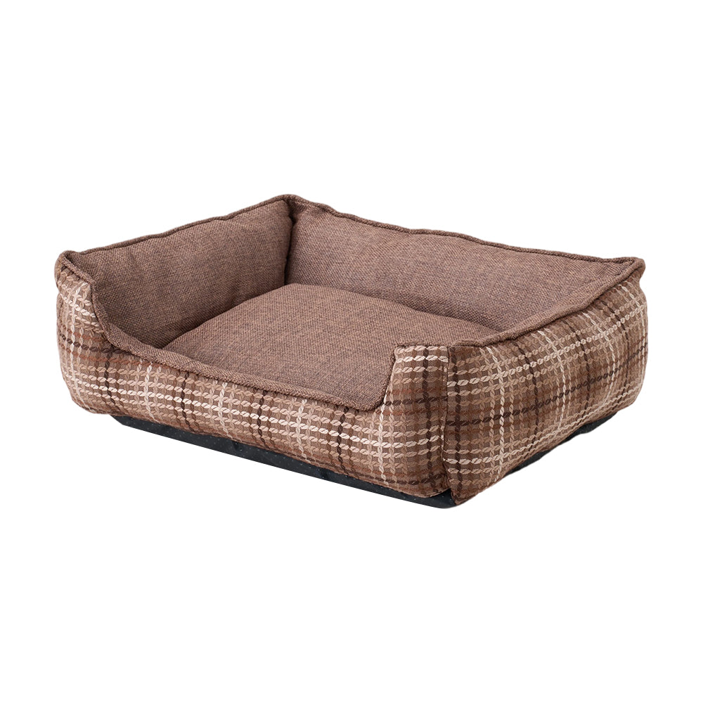 Bring a comfortable sleeping experience to your beloved pet with this pet bed. Its spacious design ensures that your pet has plenty of room to stretch out. The embracing design gives pets a sense of security, while the front concave design makes it easy for them to enter. Using cotton-linen fabric, it not only has excellent breathability but also offers great durability, capable of withstanding daily scratching from pets. Additionally, it is filled with high-elastic PP cotton inside, which does not easily collapse even after long-term use. Give your pet a warm and cosy corner, allowing them to enjoy peaceful rest.