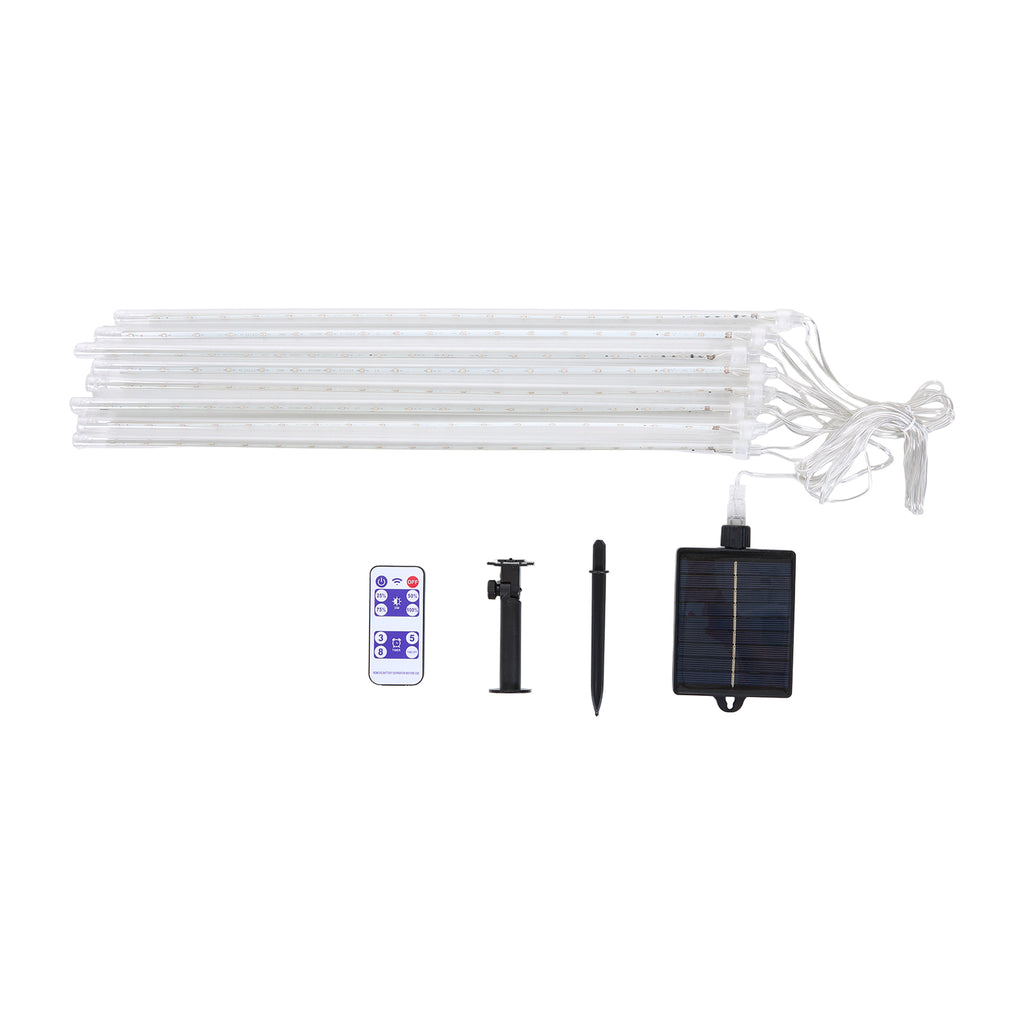 Create a breathtaking celestial display with these meteor shower string lights! Designed with strands of brilliant LED tubes, each slender filament mimics the graceful trail of a shooting star. As they sway gently in the breeze, the lights produce a mesmerising effect of starlight pouring from the heavens. Powered by a solar panel, they install instantly outdoors without needing plugs or cables. Equipped with intelligent dusk-to-dawn operation, these lights activate automatically at sunset. Complete with a remote control and multiple timer settings, they offer effortless management of your evening ambience. Perfect for Christmas, weddings, or garden parties, they transform any ordinary space into a sparkling starlit canopy.