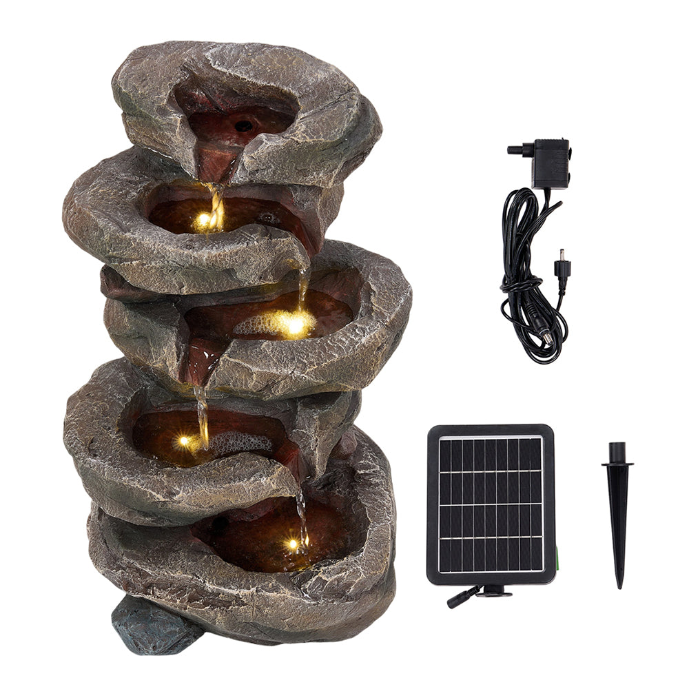 Bring instant tranquillity to your garden or balcony with this stunning solar-powered water fountain. Expertly crafted from realistic faux stone, it perfectly mimics a natural mountain stream, featuring layered cascades where the water gently flows, offering both a beautiful sight and soothing sound. Best of all, there is no fuss—it is entirely solar-powered! As evening falls, integrated LED lights illuminate the water flow, creating a wonderfully romantic atmosphere. It is the ideal way to inject natural charm and peaceful vibes into your outdoor space.