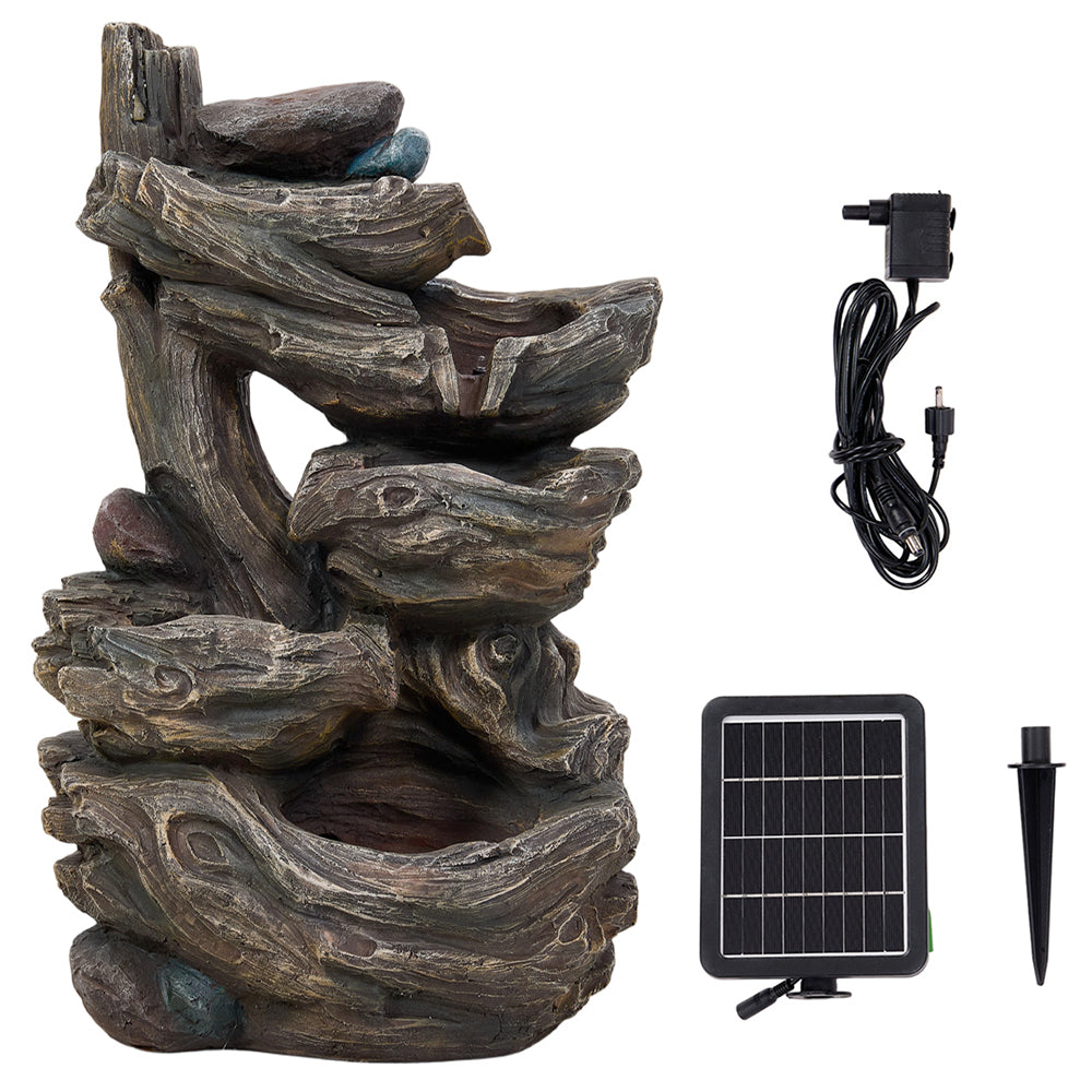 Bring a touch of woodland serenity to your garden or balcony with this stunning, naturally inspired solar-powered water fountain. Designed with an authentic, antique-look wooden texture, the tiered structure perfectly mimics a gentle forest stream. Hear the soothing burble as water cascades down, melting away stress and creating a truly peaceful atmosphere. Better still, integrated LED lighting illuminates the flow at night, casting a warm, star-like glow. It is the perfect addition to enhance any outdoor space with natural beauty and poetic charm.
