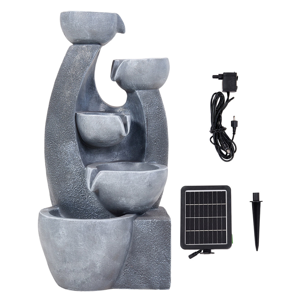 Introduce modern tranquillity to your garden or patio with this beautifully solar-powered water fountain. Combining contemporary ceramic-look basins with elegant faux stone tiers, it creates a captivating, multi-level cascade. Enjoy the natural, gentle sound of trickling water, perfect for unwinding after a long day. As evening arrives, the built-in LED strip softly illuminates the flowing water, offering a romantic, starry effect. This fountain is the ideal, stylish way to inject natural vitality and a touch of warmth into your outdoor sanctuary.