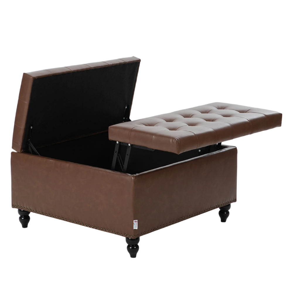 This storage ottoman perfectly combines practicality with elegant design. It features a surface covered in soft, durable PU leather that offers a comfortable seating experience. The interior is filled with high-density sponge, offering lasting comfort and reliable support even after extended use. The top includes a dual-sided lift-up and flip-open lid, providing convenient access and doubling as a temporary tabletop. Its spacious interior can easily accommodate household items, helping keep your living space neat and organised. It serves as a coffee table, sofa footstool, bed-end stool, or even a temporary seat, making it an essential multi-functional piece for any home.