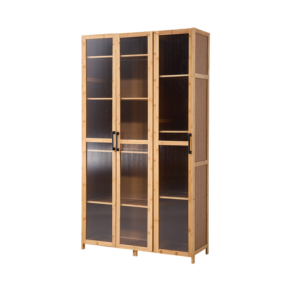 This multi-functional storage cabinet is an ideal choice for home living. Featuring a multi-tier design, it offers ample storage space for organising books, ornaments, and other items neatly. With adjustable layer heights through pre-drilled holes and detachable shelves, it accommodates items of various sizes. Equipped with three acrylic doors, it ensures durability, dustproof protection and keeps the contents tidy. The hydraulic hinges paired with aluminium alloy handles ensure smooth opening and closing while reducing noise. Moreover, the elevated base design effectively prevents moisture and mould damage to stored items.