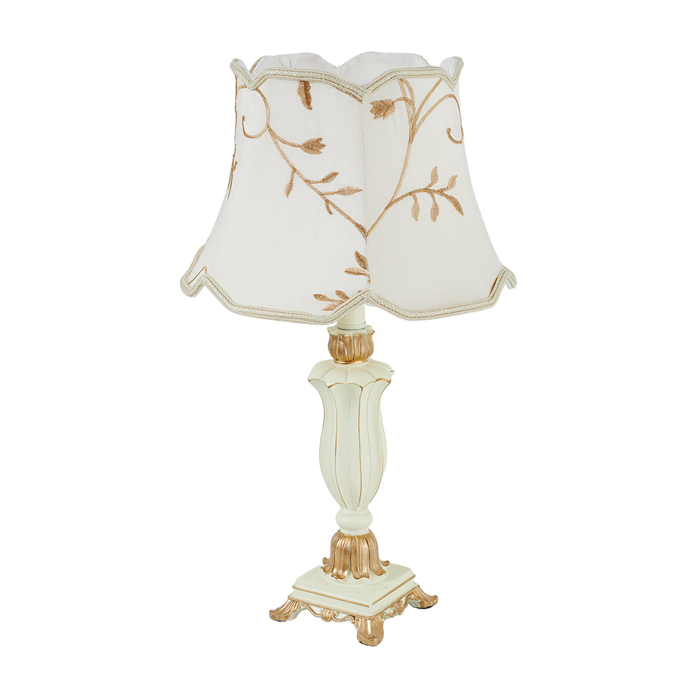 Drawing on European design heritage, its fluted base resembles a graceful vase, accented with ornate gold detailing for a luxurious feel. Topped with a fabric shade featuring delicate wave-like folds and embroidered gold floral motifs, this lamp exudes an artistic and elegant charm. Perfect for creating a warm and romantic atmosphere, this piece combines intricate craftsmanship with everyday functionality.