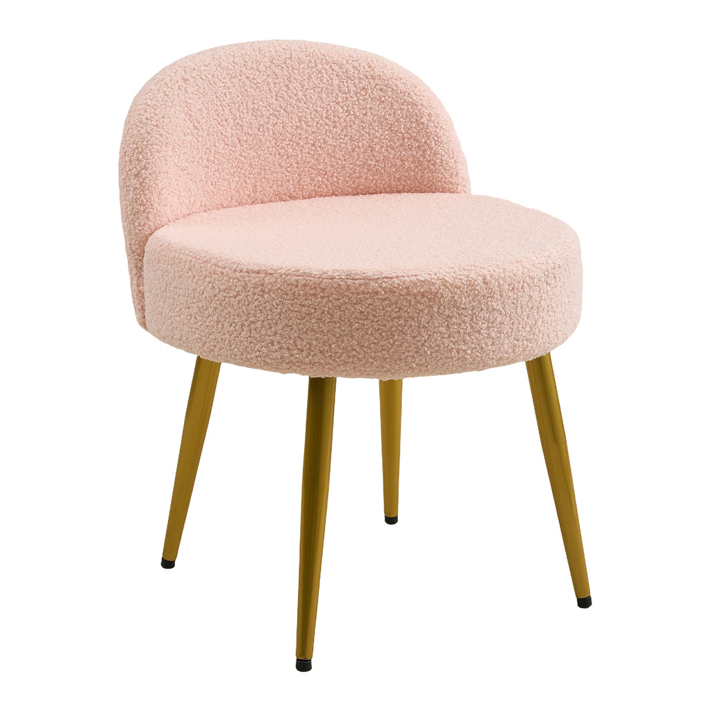 Perfect for a bedroom corner, this dressing table stool combines compact design with elegant charm. Finished in a pink tone, it complements modern and minimalist interiors with a fresh, sophisticated touch. The high-density sponge seat and backrest offer lasting comfort and support, even during extended use. The subtly curved backrest provides gentle support, while the clean, minimalist silhouette blends seamlessly into any interior. Compact yet durable, it is ideal for bedrooms, entryways, or dressing areas.