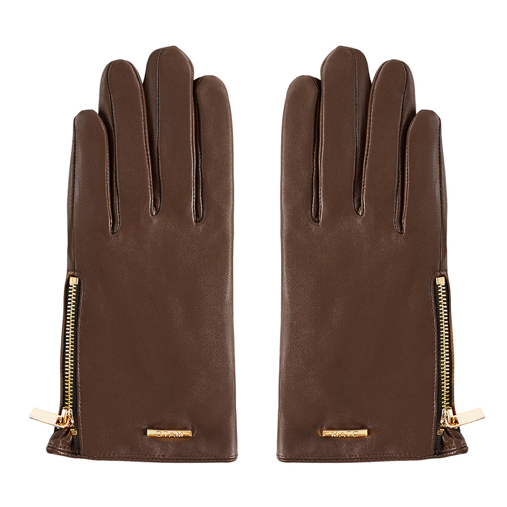 This pair of gloves seamlessly blends unique aesthetics with practicality. Made from soft sheepskin, it features a clear and delicate texture, offering excellent elasticity and durability for a comfortable wearing experience. The high-density fleece lining provides extra warmth, making it especially suitable for outdoor activities in cold weather. Adorned with high-end metal accessories, it adds a touch of sophistication, showcasing the unique taste of the wearer. The zipper decorations not only enhance the design but also allow for a slight adjustment in wrist width to fit various hand shapes. It keeps you warm and stylish whether shopping or working outdoors in the cold season.