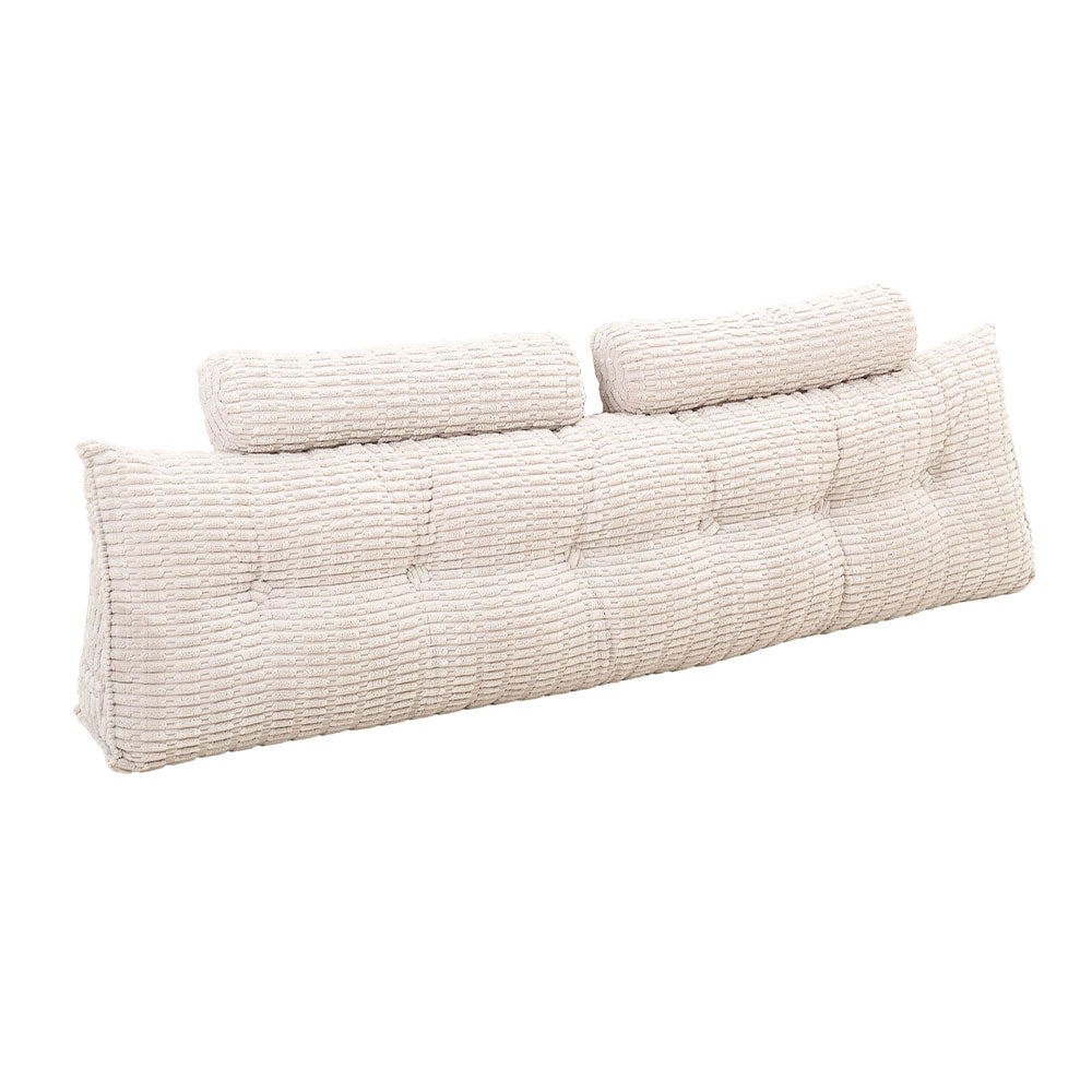 Experience cloud-like comfort with this versatile headboard pillow, designed for superior relaxation anywhere in your home. Its elegant triangular shape contours perfectly to your back, offering firm yet gentle support against headboards, sofas, or floor seats. A neat textured pattern and quilted design across the surface add visual depth while improving durability and wrinkle resistance. Two removable cylindrical pillows provide extra cushioning for your head and neck, ideal during long reading sessions or afternoon rests. Finished with its versatile solid colour, this cushion combines smart functionality with a minimalist look that suits any interior style.
