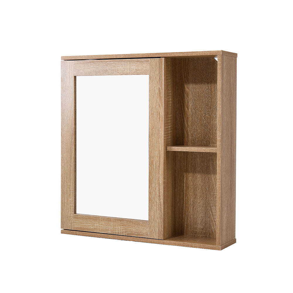 This bathroom mirror cabinet maximises space with style. Featuring a stylish mirror-in-frame design with a natural wood finish, it adds both elegance and warmth to your decor. One side offers a mirrored door with ample storage behind it—the mirror provides a clear, distortion-free reflection, perfect for daily grooming and makeup. Inside, adjustable shelves let you customise the spacing to accommodate items of various heights. The other side includes a two-tier open shelf for quick and easy access to frequently used essentials. Perfect for grooming, storage, and decor, it keeps your bathroom neat and functional.
