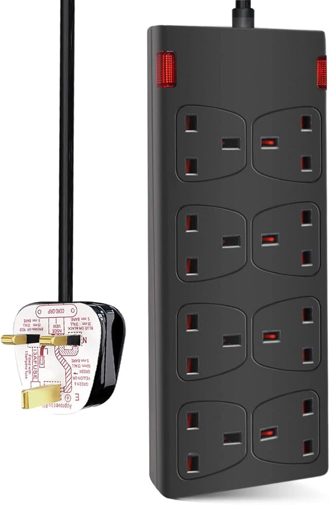 This 8-way extension lead is designed for safe and flexible power needs. Featuring eight sockets, it powers up to eight devices simultaneously—perfect for homes or offices short on outlets. Its optimised conductor ensures efficient electricity transmission, keeping appliances running reliably. A built-in 13A fuse automatically cuts power during overload or short circuits for enhanced safety. Each socket includes child-resistant shutters to prevent accidental insertion of foreign objects. Plus, two clear power indicator lights show when the unit is live. Perfect for living rooms, bedrooms, kitchens, or offices—it is ideal for modern multi-device homes.