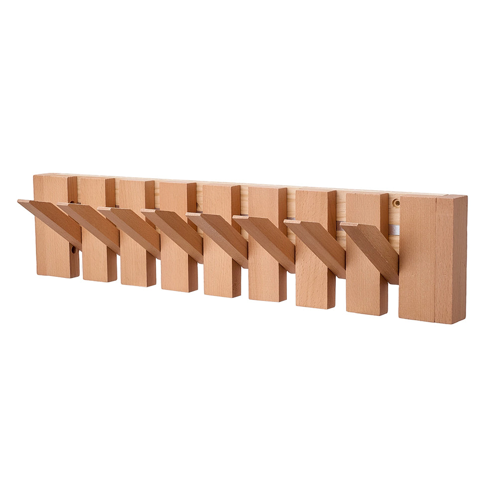 Add warmth and style to your walls with this wall-mounted coat rack. Crafted from high-quality beech wood, it offers strength and lasting durability. Its clean, contemporary design showcases wood grain while saving valuable floor space. Eight sturdy hooks provide easy storage for coats, bags, hats, and more, keeping essentials organised and accessible. Quick and secure to install, it is ideal for hallways, bedrooms, or living areas, offering a practical, stylish solution for clutter-free, modern homes.