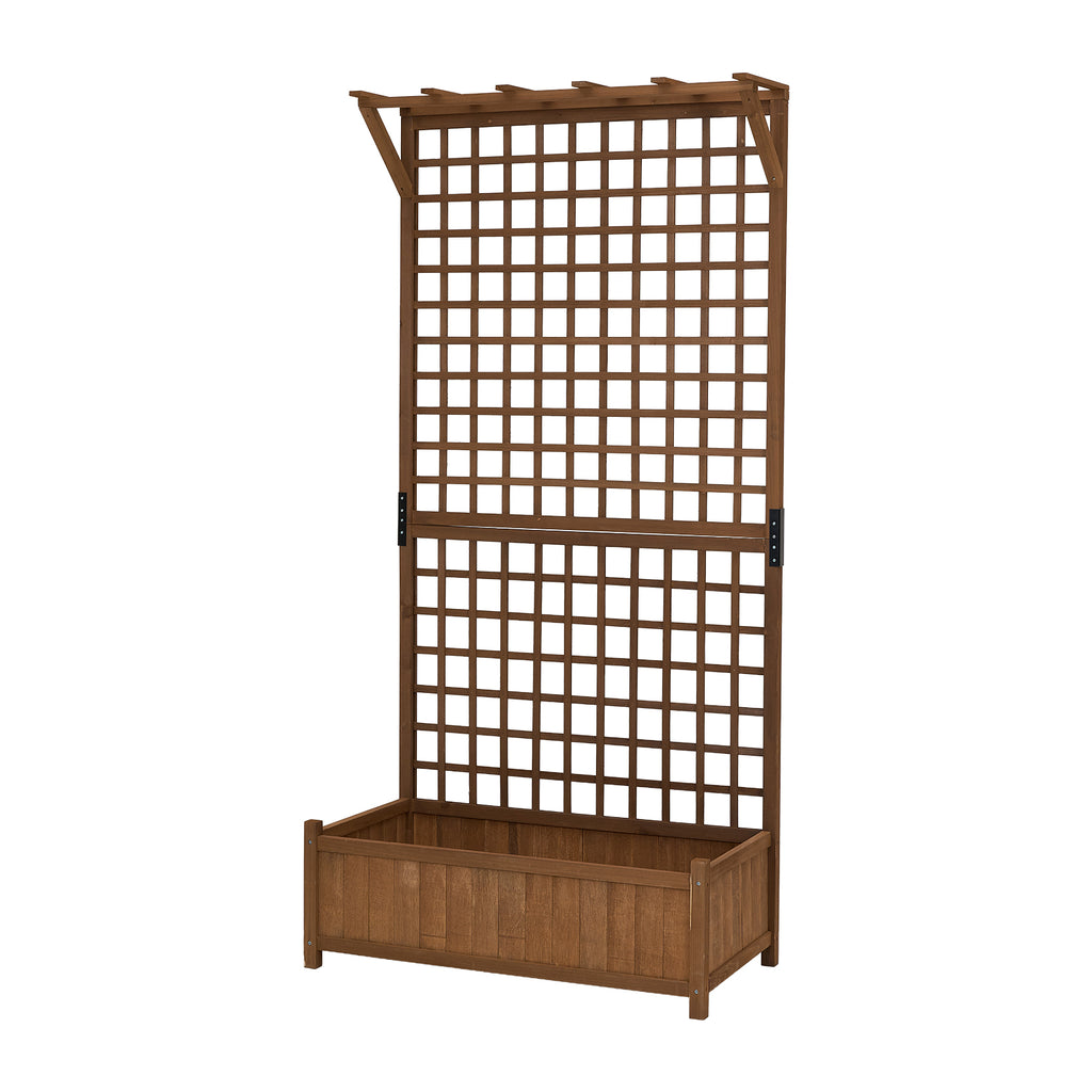 Create your dream garden with this elegant raised garden bed! Featuring a warm brown finish, it blends beautifully into any outdoor space. Its spacious planting area comfortably accommodates vegetables, herbs, flowers, etc. It features a horizontal roof and a vertical trellis—ideal for supporting climbing plants or hanging baskets—creating a lush green wall and natural privacy screen. Crafted from premium fir wood and treated with water-based paint, it is weather-resistant and built to last. Plus, it is reinforced with black metal connectors at key joints for enhanced stability and wind resistance. More than just a planter, it is a stylish centrepiece for your personalised garden oasis.