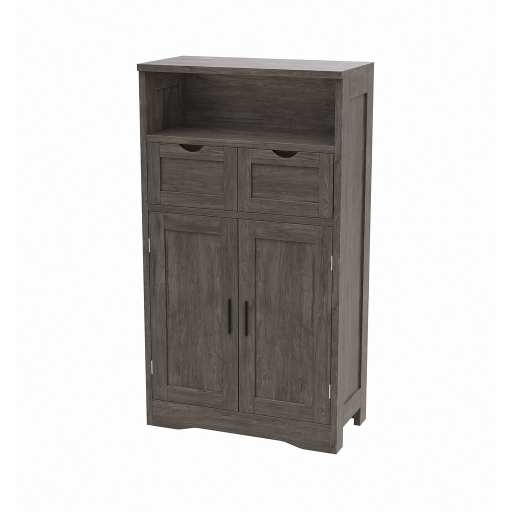 Tidy up your lounge or dining area with this sideboard! It has an open compartment that is great for quick-to-grab items and two smooth-sliding drawers perfect for organising napkins and cutlery. Underneath, you will find a cabinet with wonderfully spacious storage. The handy flat top doubles as a display area for your favourite plants and decorative touches. Plus, its sophisticated wood grain finish will add classic style to any room.